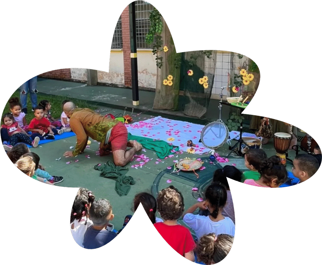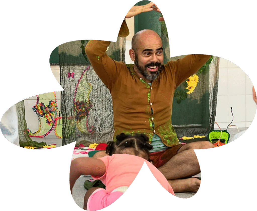 O Jardim dos bebês é uma contação de histórias para bebês que parte de obras literárias para bebês propondo uma experiência com a literatura que se dá a partir de um espaço cênico com ervas e aromas que evocam a memória de um jardim. A partir da posição no chão, no colo da mãe ou engatinhando pelo espaço livros, histórias, instrumentos e música criam uma experiência de aproximação do olhar, de repetição com as palavras, de toque no livro enquanto e do ato de folhear um livro no colo da mãe.